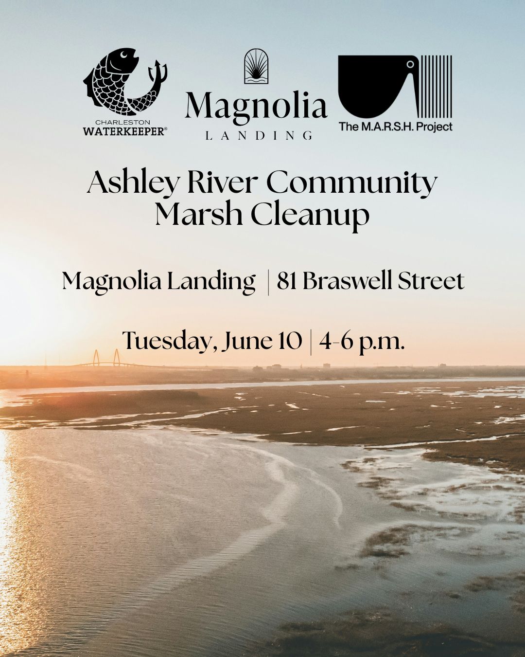 Come join Magnolia LandingCharleston Waterkeeper and The M.A.R.S.H. Project for a fun and rewarding afternoon of marsh beautification. Let's work together to preserve and protect the Ashley River's natural ecosystem.