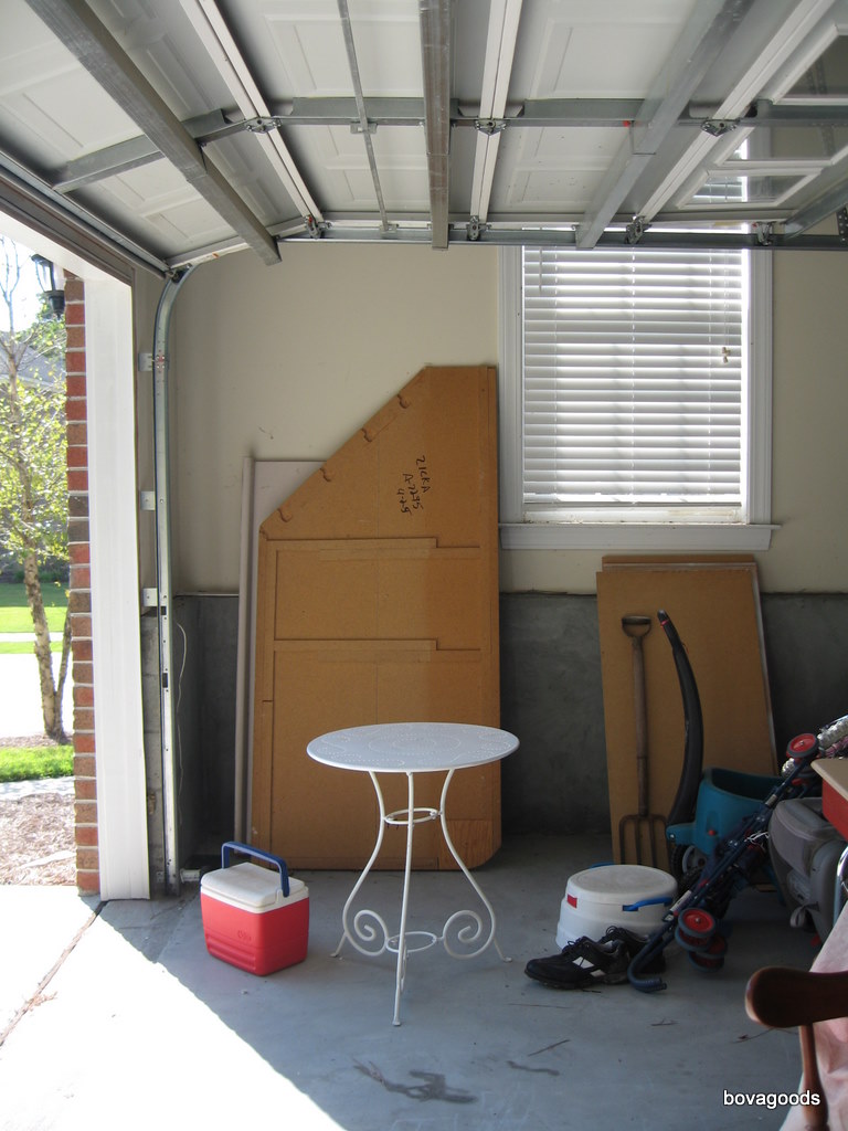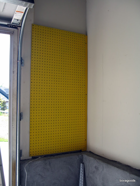 I also left a space of about an inch at the bottom of the board. (Unfortunately, we share our garage with gross little critters that like to crawl along that ledge. ewww...) The last thing I wanted was for one of our "friends" to get stuck behind the board. That would certainly not end well for anyone involved.