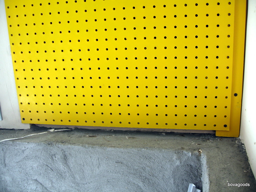 Enter my best friend spray paint!!! This peg board really soaks up the paint, so I primed first. I think rolling the paint on would be a more efficient method, but I already had yellow spray paint.