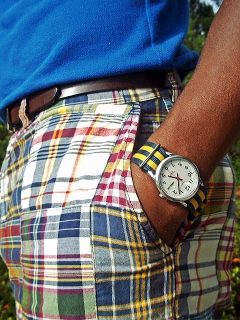 Polo Shirt~Hollister, Madras Shorts~Polo Ralph Lauren, Belt~J.Crew, Watch~Timex |